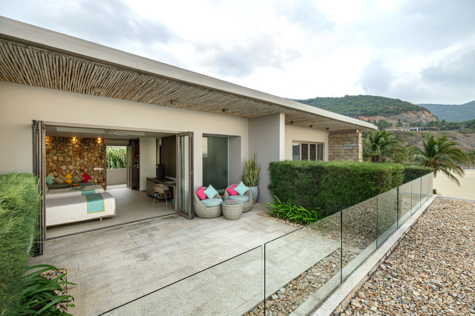 Отель потрясающий своей территорией, отзывчивым и приветливым персоналом, концепция ECO в плане средств гигиены (мыло, шампуни, гель для душа, все в глиняных флаконах). Пляж как я люблю, море теплое и чистое, песок чистый, пляжная полоса достаточная, приватный т.е. кроме резидентов отеля никого нет, вещи спокойно можно оставить на шезлонге, людей обычно немного и не шумно. Брала питание BB (завтрак) в целом всегда одно и то же, без какого-то разнообразия, но приготовлен вкусно, голодным не останешься. Понравилось наличие натуральных соков, детокс воды и прохладный напиток каркаде, натурального йогурта и десерта с чиа, выпечка тоже вкусная. Номер просторный, ежедневная уборка и дважды в день смена полотенец и вынос мусора. Территория протяженные вдоль берега и передвигаться можно на багги позвонив на ресепшн. Трижды ходит Шатл от отеля в Начало! С удовольствием повторю свой отдых в Вьетнаме в этом отеле!
